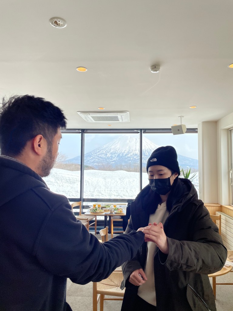 回台灣的前一天是個觀光吃飯拍照行程。體驗二世谷的慢步調,逛逛街,喝咖啡,買點紀念品,晚上再幫各位滑雪夥伴們針灸修復一下(沒錯,我是位中醫師。),期待大家之後邀約一起滑雪。最後一天早晨,吃著漢克一如繼往做的豐盛的早餐和大哥帶來的咖啡,這個雪季在二世谷的旅途畫下完美的ending。
