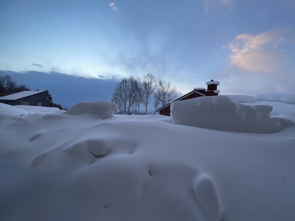 休息日睡到自然醒,悠哉喝著咖啡欣賞雪景。但看著看著,越來越不對勁,這雪況也太好了吧!我跟大哥抱怨道:「我天天想休息,但每天雪況都好到不允許我休息,實在是太累了。」大哥笑著說:「這是多少人渴望的啊,你竟然還在抱怨。」午餐過後,看著不滑對不起自己的雪況,我們又再度出發到Annupuri玩耍。