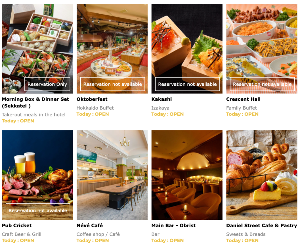 - Oktoberfest―Hokkaido Buffet Rusutsu Resort Hotel North Wing 1F ― 有相當多的選擇,吃到飽的餐廳,有蟹、生魚片等等,我曾經也有吃過帝王蟹腳吃到飽的。
