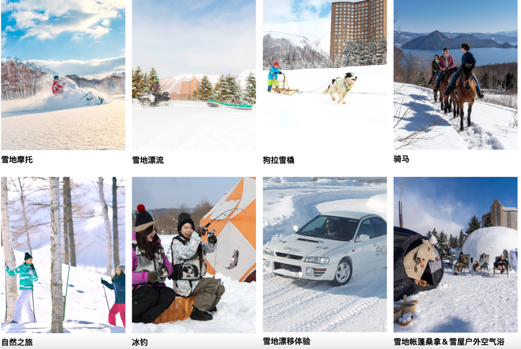 有許多的活動與托嬰中心。有適合各年齡層的活動,小小孩有蠟筆小新的室內遊樂室、年長長輩可以有走雪地的行程,算是一個很全面服務,可以讓愛滑雪的人可以放心滑雪的地方。