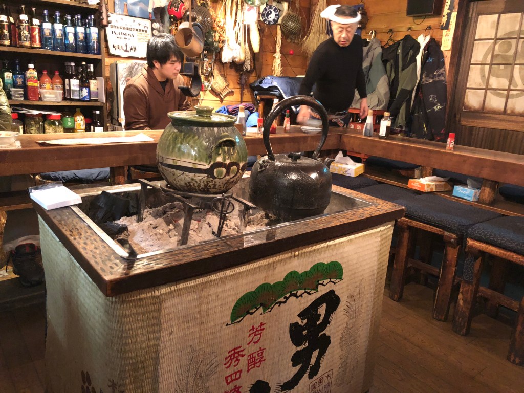 居酒屋炉ばた,朋友來就會帶他們來小酌燒酒跟吃肉,這是一間評價很高的小店,就算平日也都是客滿的,所以也是避開晚餐時間來比較會有位置。最令人難忘的就是他中間的爐子了,非常有日本的味道,再加上一個ㄇ字型的桌子,把每個人都聚在一起。