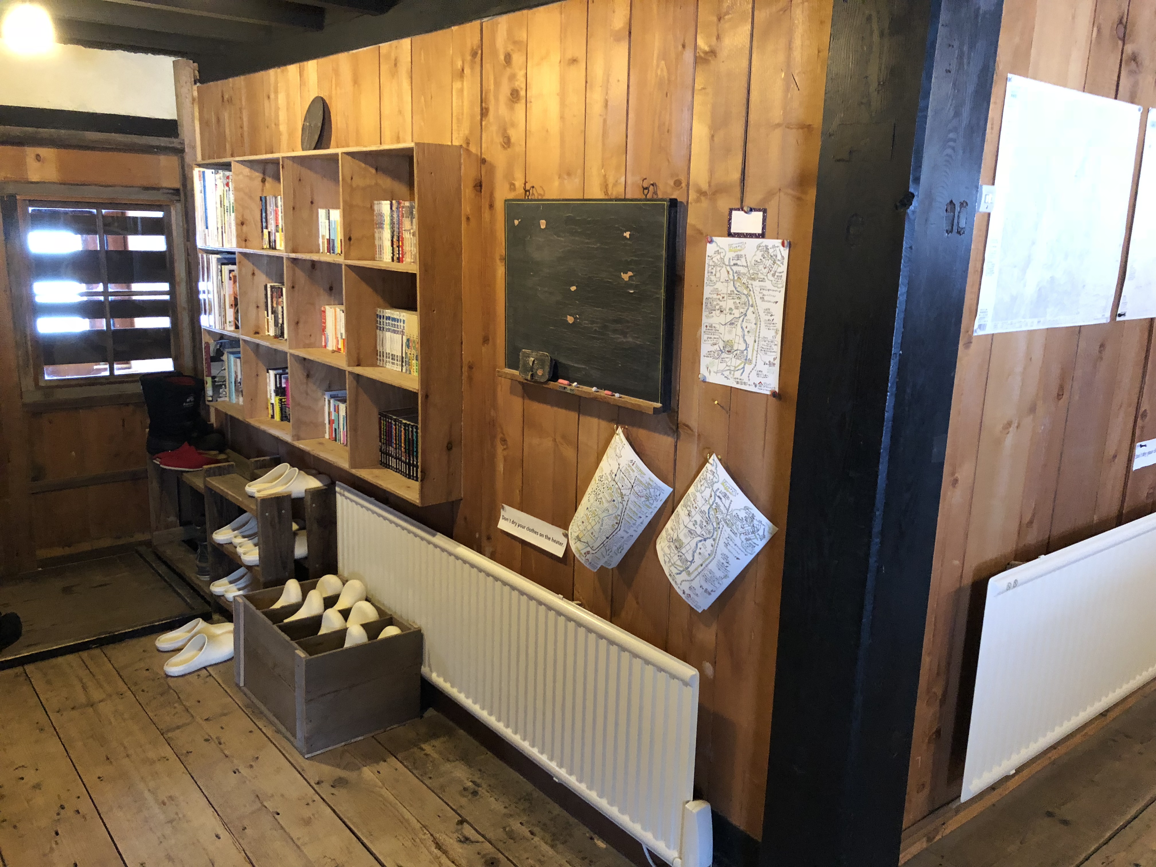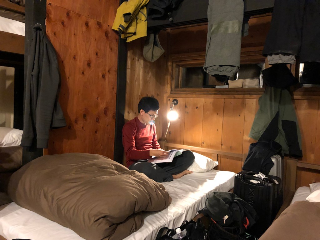 床很舒服,床頭也有提供閱讀燈,正好給當時要考CASI LV2的小編可以床頭讀書。整個住宿用得乾乾淨淨的,都把雪衣褲橫豎一掛在樑上,一出門的農村景色會讓人停留一陣子。住在這舊農舍改建的小屋裡,非常的安靜,處在大自然裡,彷彿不用睡那麼的久,自然陽光照醒,即充滿活力。