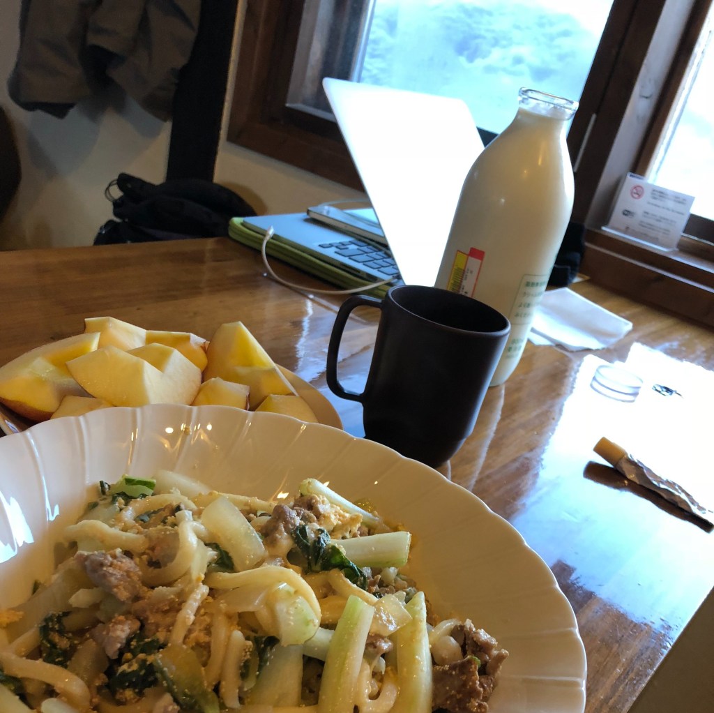 今天沒雪沒出門,在民宿做做事,下午去泡湯,晚上正要煮晚餐時候,民宿的歐巴桑很熱情的要用給我們吃,原來日本新年就像台灣過年一樣,一連放5天。過年的年夜飯圍爐,這邊也有,已經好幾次過年都在日本度過,似乎有個年夜飯要吃蕎麥麵的傳統?隔一天還有料理茶碗蒸(是料超多的碗公蒸吧?!)跟唐揚雞。於是跨年的晚餐就跟歐巴桑度過了,沒有煙光酒樂,但是有Home的感覺。