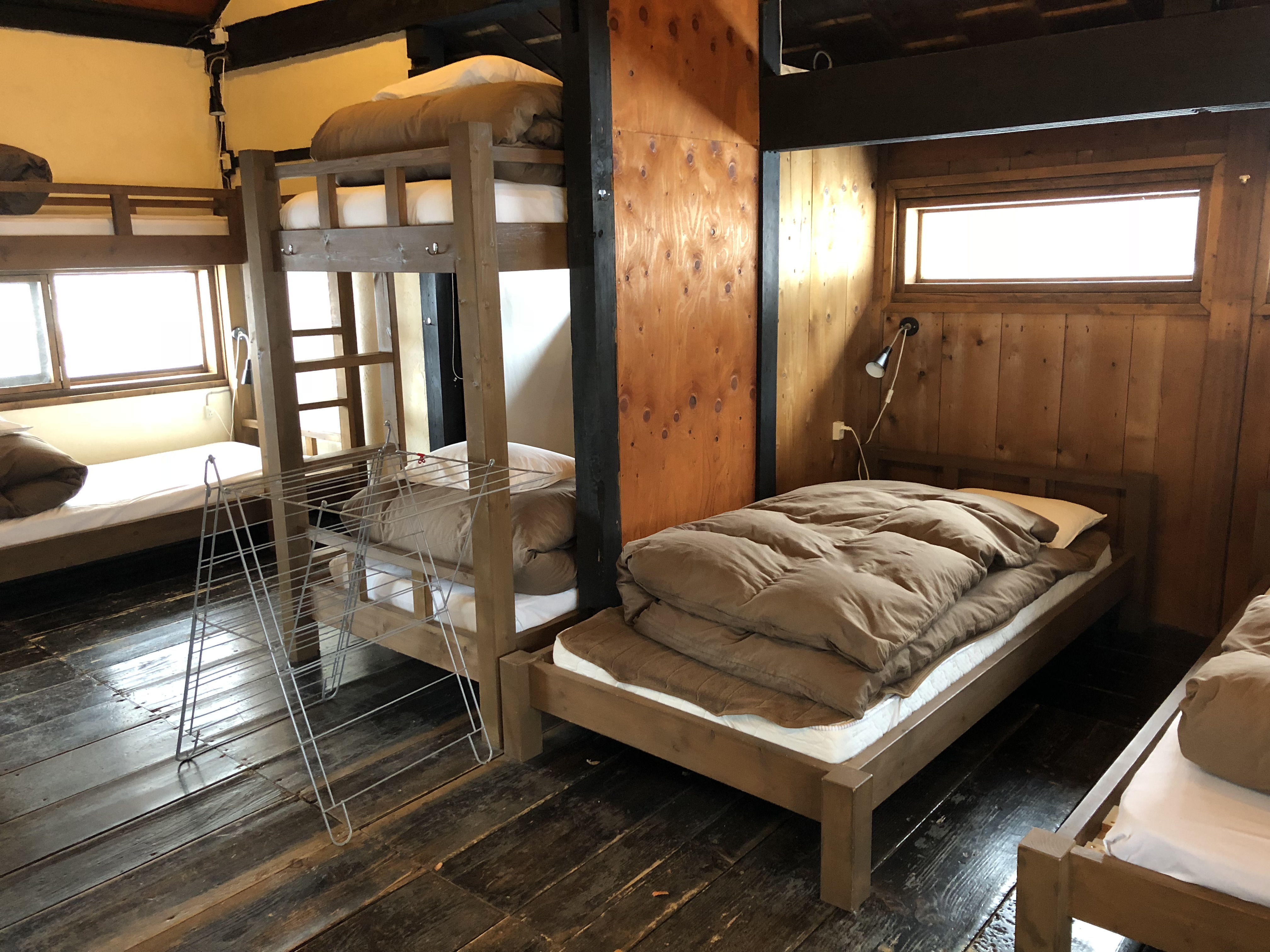 有小廚房,該有的器具都有。總共有兩個房間,一間有四個床位、另一間有八個床位,我們住的時間在12月中左右,幾乎沒什麼人,有好幾天都是八人房兩人住,有客人來老闆也是開四人那間住,覺得相當窩心。